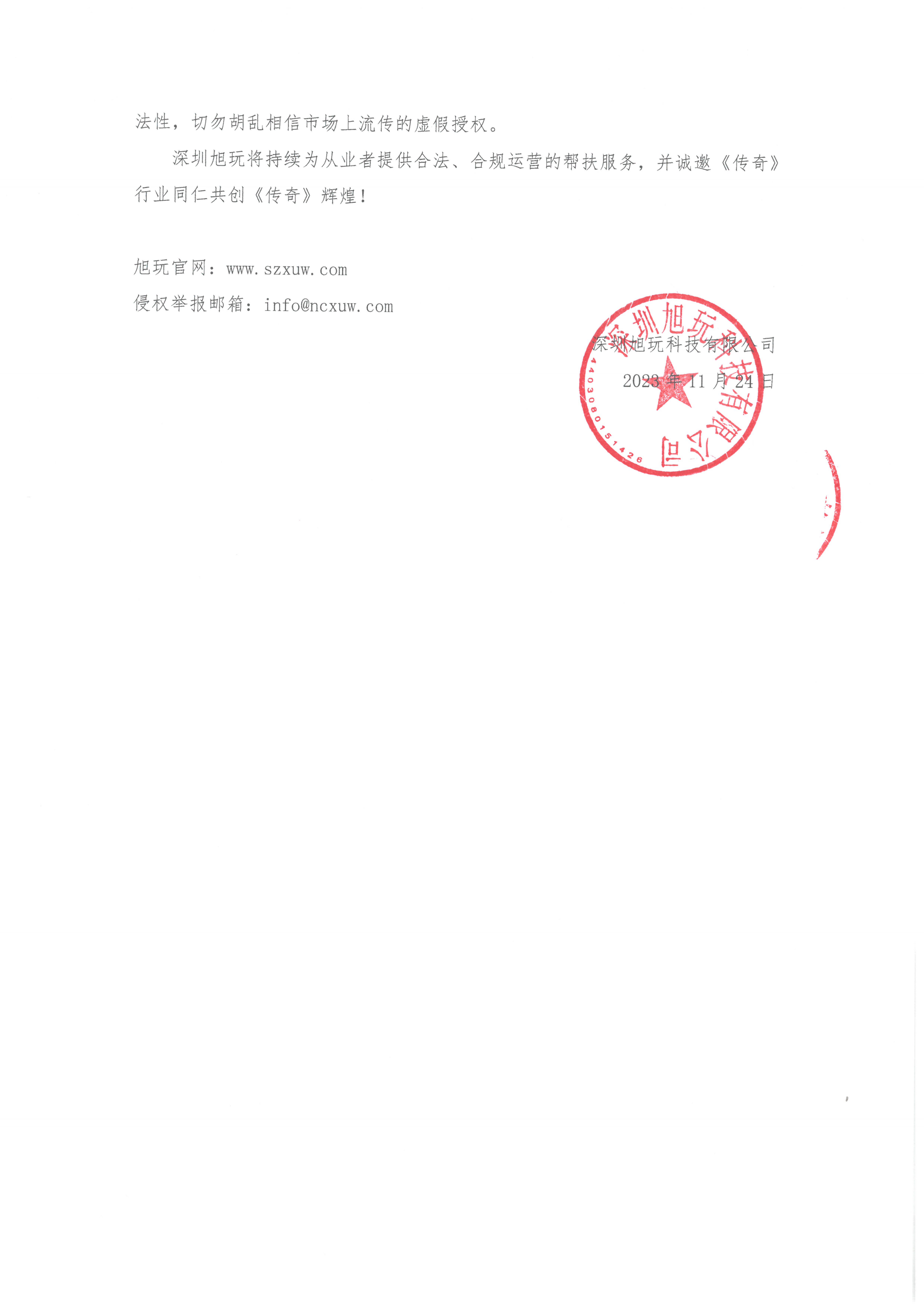 深圳旭玩將持續為從業者提供合法、合規運營的幫扶服務,并誠邀《傳奇》行業同仁共創《傳奇》輝煌!